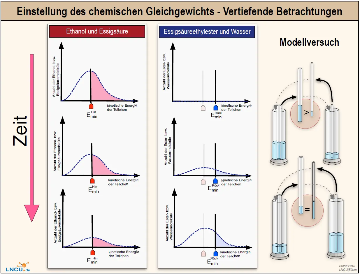 - Erklären Sie, warum im Gleichgewichtszustand die Konzentration der Edukte und Produkte nicht gleich sein kann. Nutzen Sie dafür M3.
