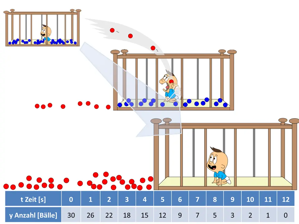 In der Analogie schaute man zu verschiedenen Zeitpunkten auf die Situation vor Ort und bestimmte die Veränderung der Bällezahl.