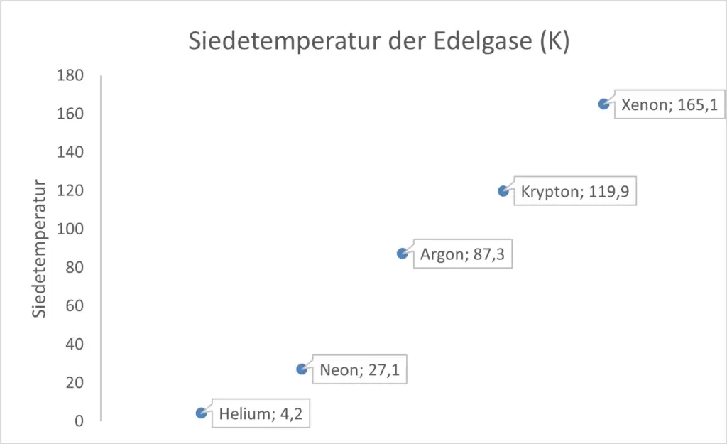 Siedetemperaturen von Helium bis Xenon im Vergleich.8