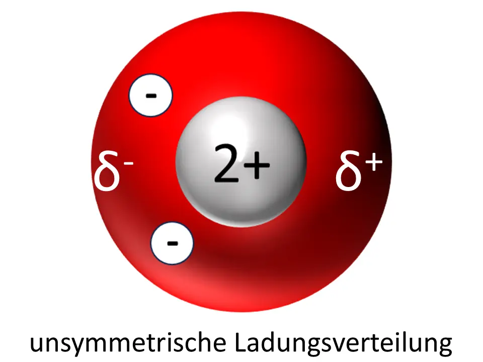 Das Atom wird so für einen kurzen Moment zu einem temporären (also kurzzeitigen) Dipol – es entstehen positive und negative Teilladungen (Partialladungen).