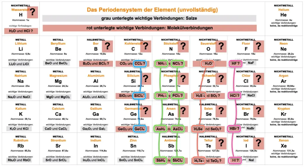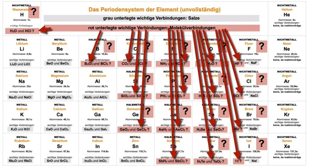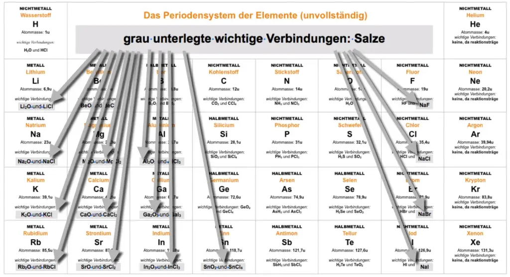 Manche Elemente bilden bei der Reaktion miteinander Salze….andere Molekülverbindungen PSE.1