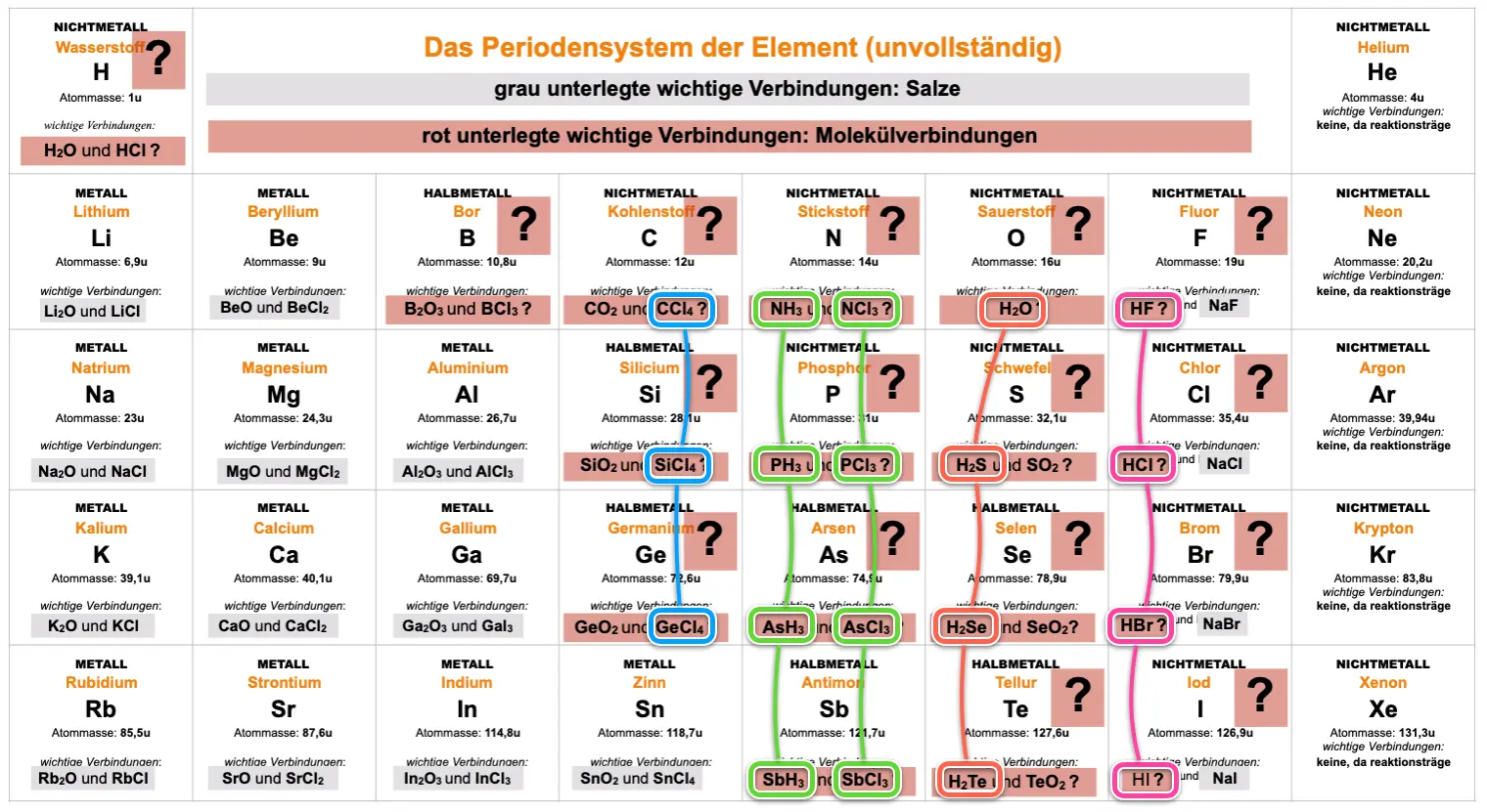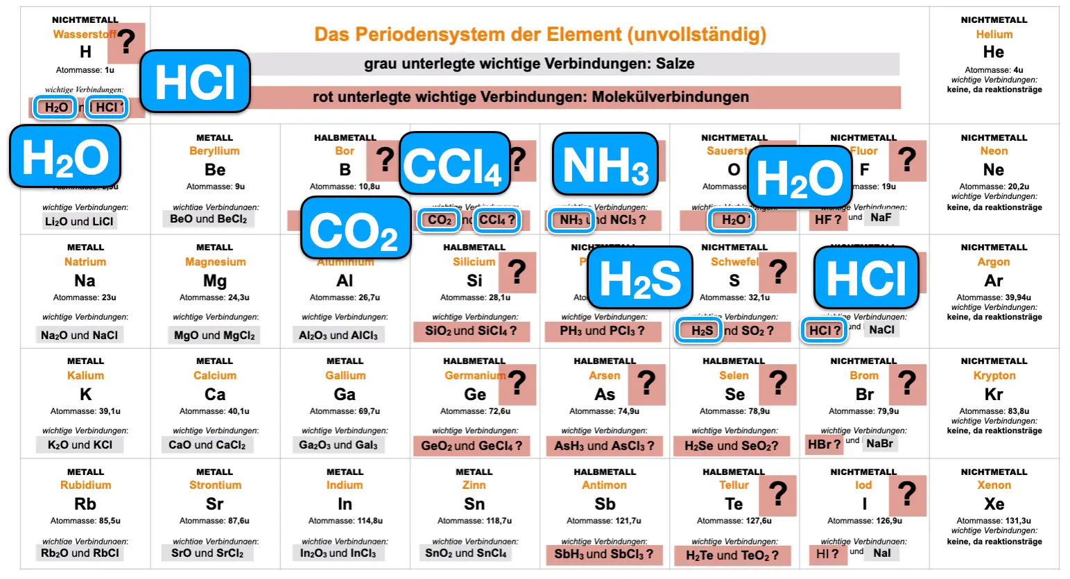 Manche Elemente bilden bei der Reaktion miteinander Salze….andere Molekülverbindungen PSE.1