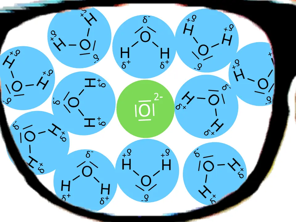 Das Oxid-Ion (O2-) ist interessant. Es existiert nur in Salzen. In wässriger Lösung bilden sind daraus sofort durch Reaktion mit einem Wassermolekül zwei Hydroxid-Ionen (OH).