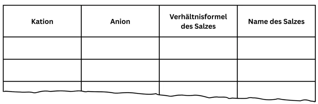 1. sinnvolle Kombinationen aus eurem zugeteilten Kation mit jedem Anion vom Etikett bildet,