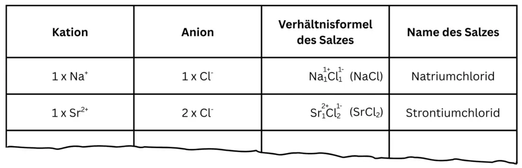 2. zu jedem kombinierten Salz die Verhältnisformel sowie den Namen des Salzes notiert.