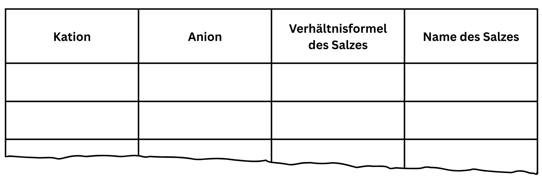 1. sinnvolle Kombinationen aus eurem zugeteilten Kation mit jedem Anion vom Etikett bildet,