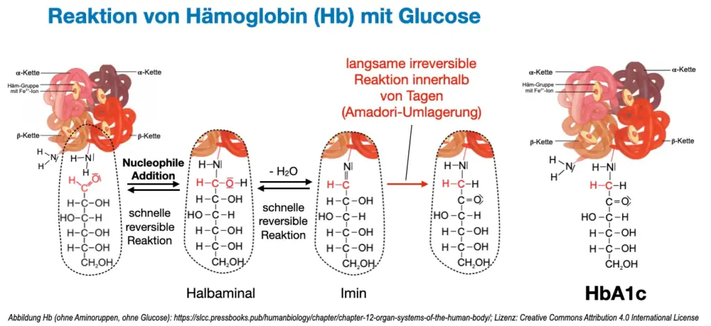 - Informieren Sie sich, auf welche Reaktion die Bildung von HbA1c zurückzuführen ist und inwiefern der HbA1c-Wert Aussagen über längerfristige Tendenzen bzgl. des Blutzuckerspiegels ermöglicht.