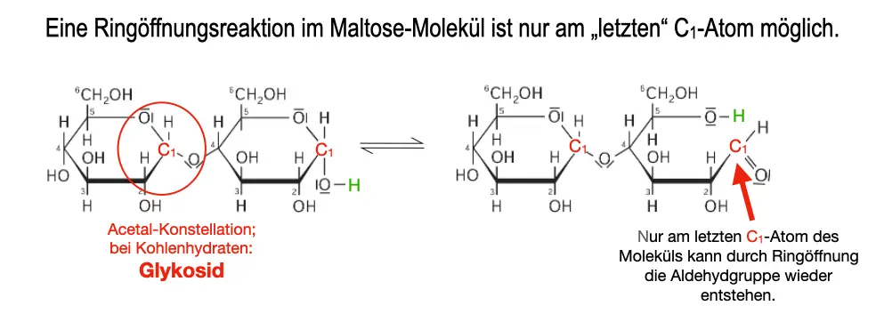- Erläutern Sie, wie Bildung eines Acetalmoleküls abläuft (mit Strukturformeln/ Welches Atom greift warum wo an?) und übertragen Sie ihre Erkenntnisse auf die Bildung eines Maltose-Moleküls aus zwei Glucosemolekülen.