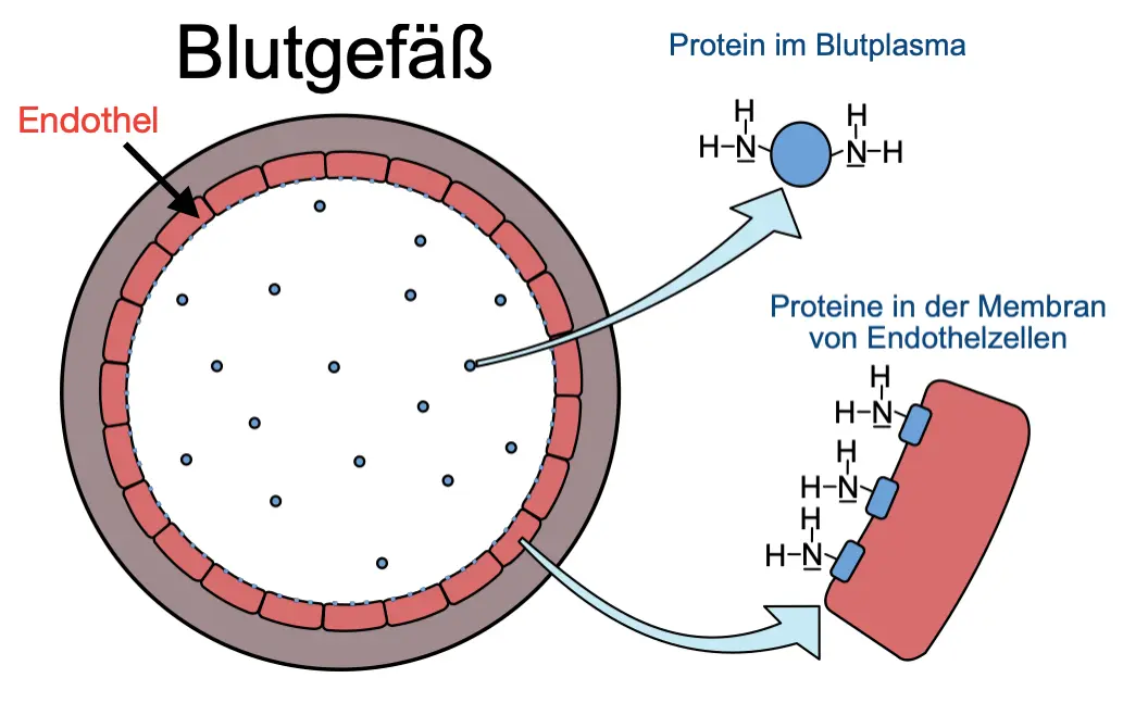 Frage: Inwiefern wirkt sich ein zu hoher Blutzuckerspiegel schädigend auf Blutgefäße aus? Kann es damit zu tun haben, dass Glucose-Moleküle mit Aminosäureresten an der Innenseite des Endothels reagieren und so die innere Oberfläche der Blutgefäße verändert wird?