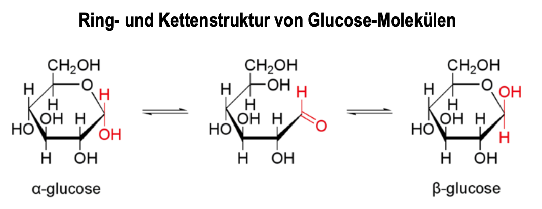- Erläutern Sie die Ringbildungsreaktion des Glucosemoleküls (mit Strukturformeln in Einzelschritten) und erklären Sie die Bezeichnung „cyclisches Halbacetal“.