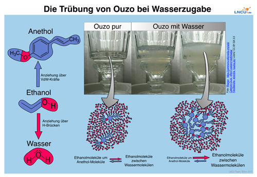 4. Vertiefung: Im Video wird gezeigt, wie die Trübung von Ouzo wieder rückgängig gemacht werden kann. Erklären Sie auch dies.