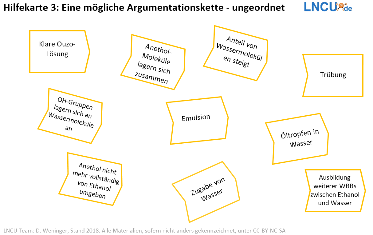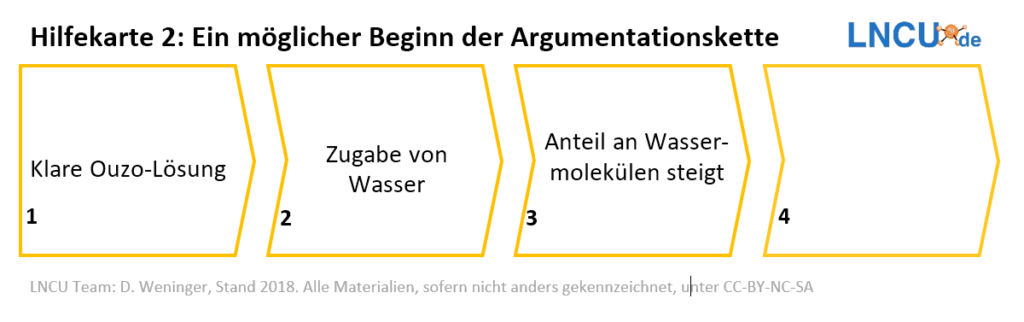 3. Erstellen Sie basierend darauf eine Argumentationskette (s. Anregungen), mit der Sie erläutern, wie es durch die Wasserzugabe zu einer Trübung kommt.