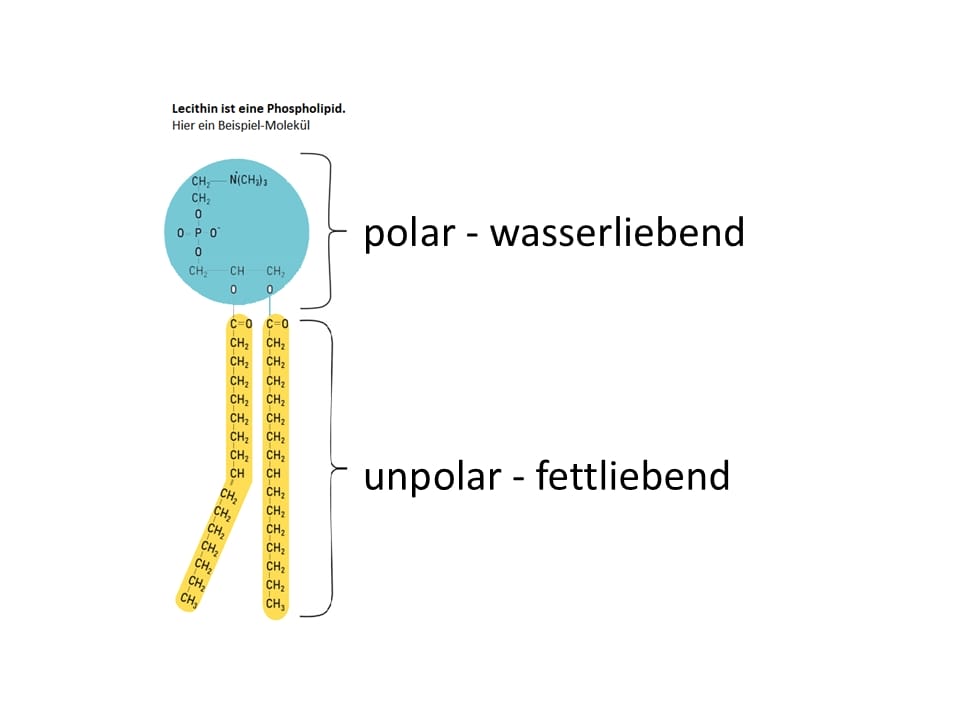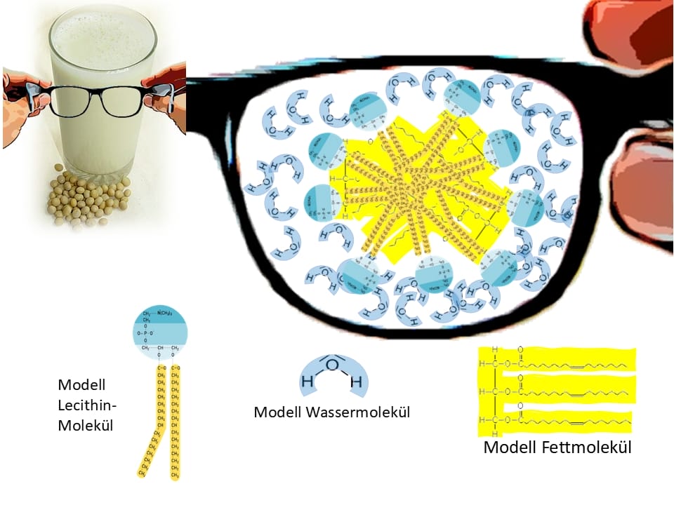 Es gibt noch eine weitere Substanz in Milch und like-milk, die als sogenannter Emulgator wirkt: Lecithin, ein Phospholipid-Molekül.