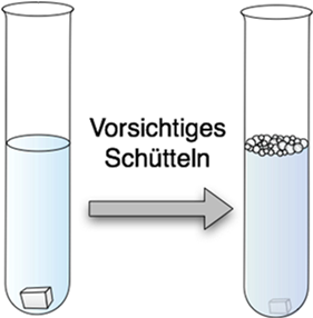 In ein Reagenzglas mit Wasser wird ein Stückchen Seife gegeben. Anschließend wird das Reagenzglas etwa