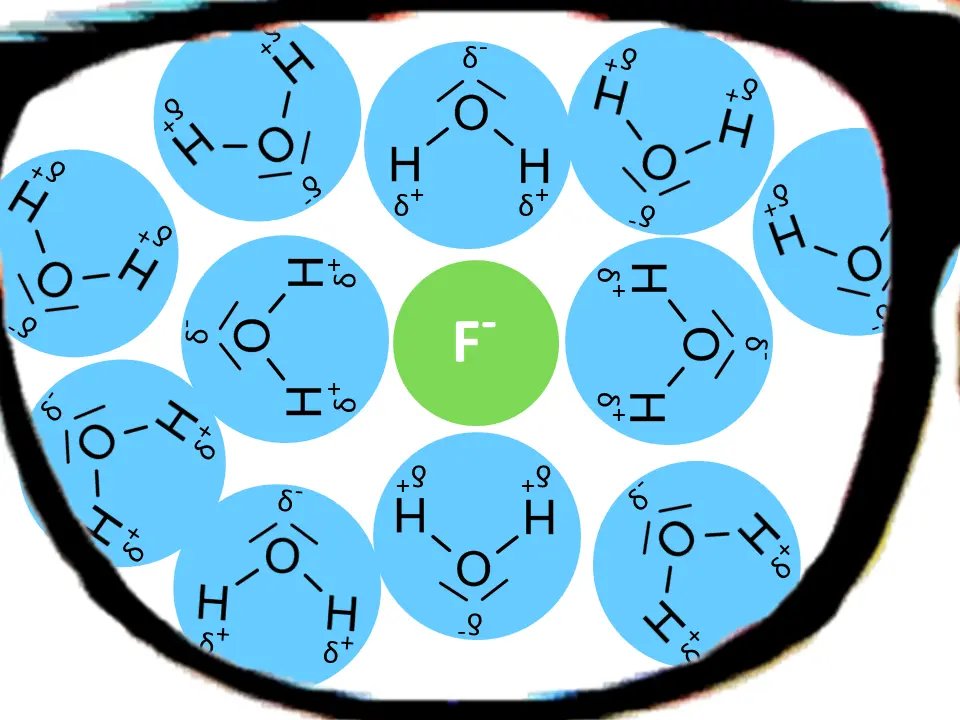 - Beschreibe an zwei Beispielen aus Galerie 2 die Anordnung der Wasserteilchen in der Hydrathülle um ein Anion und um ein Kation.