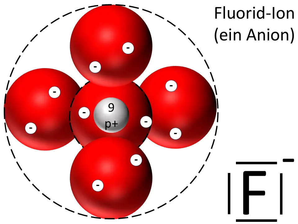Mache dies auch mit dem Fluoratom (F) und Fluorid-Ion (F–).