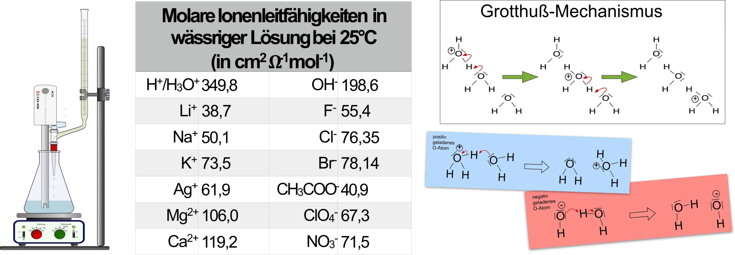 Leitfähigkeiten verschiedener Ionen und der Grotthuß-Mechanismus. 1