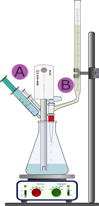 Versuchsaufbau. A: Mit Spritzentechnik. B: Mit Bürette. 2