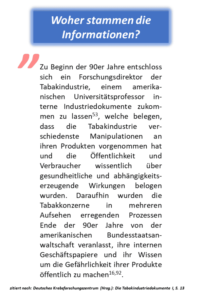 Das Deutsche Krebsforschungszentrum (DKFZ) offenbart die Manipulationen der Tabakindustrie – Auszüge. 1