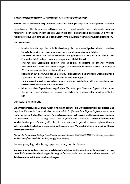 Listen Sie am Ende der Notation alle in der Stunde verwendeten Materialien auf, z.B. Arbeitsblätter, Präsentationen , Experimentieranleitungen, Abbildungen von Modellen etc.