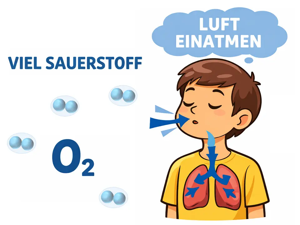 • Wie Sauerstoff atmest Du ein, wenn du einmal tief Luft holst?