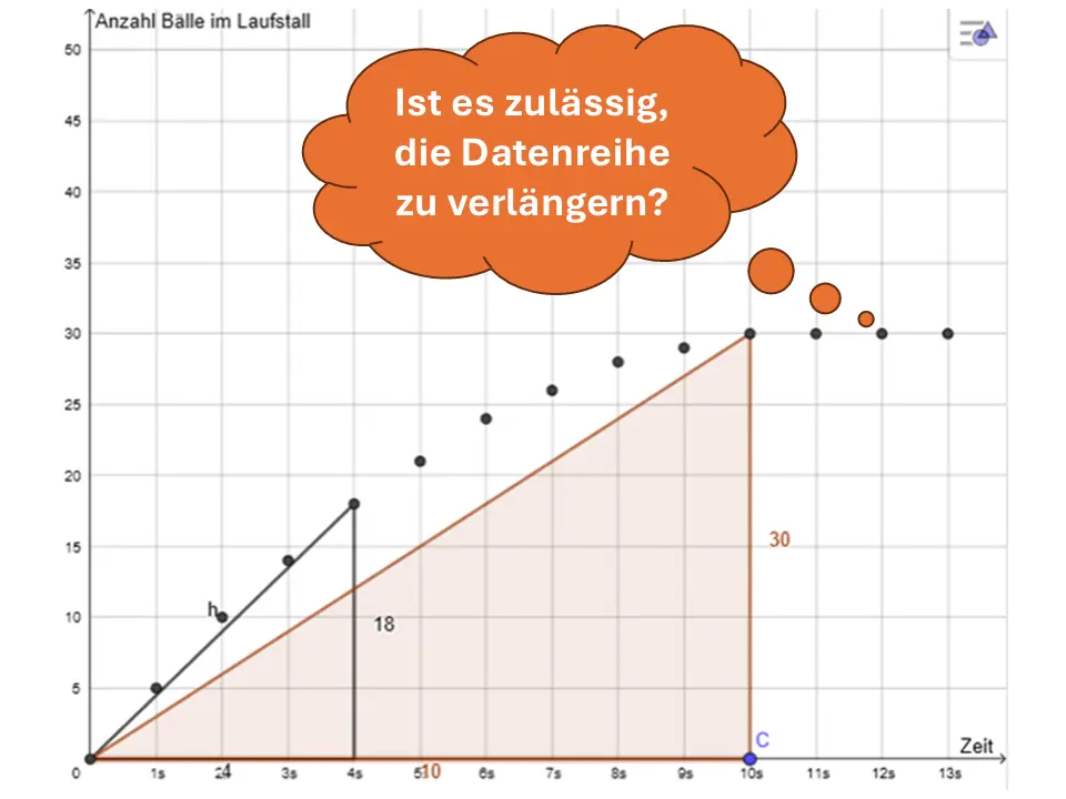 Es ließe sich eine umfangreichere Wertetabelle erstellen, wenn wir zu mehreren festgelegten Zeitpunkten die Bälle im Laufstall zählen: