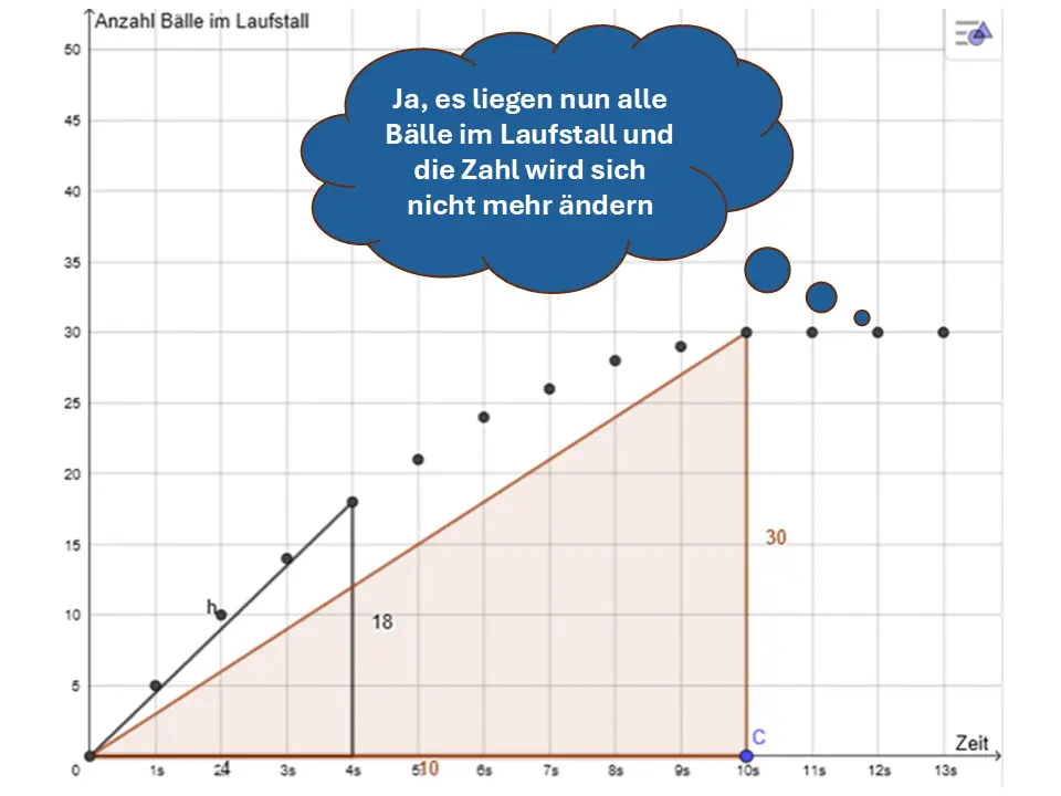 Auch hier ließe sich eine Wertetabelle erstellen, wenn wir zu mehreren festgelegten Zeitpunkten die Bälle im Laufstall zählen: