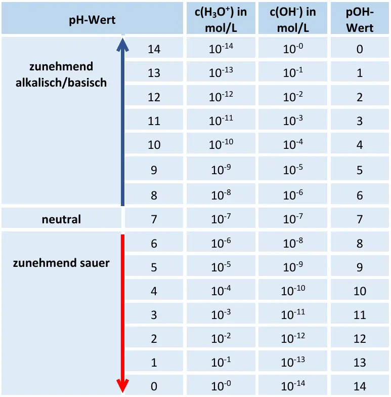 Damit lässt sich aus dem pH-Wert stets der pOH-Wert berechnen – und umgekehrt.