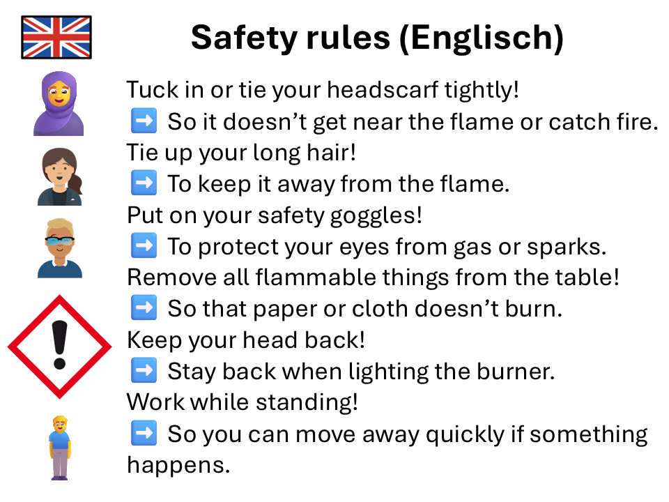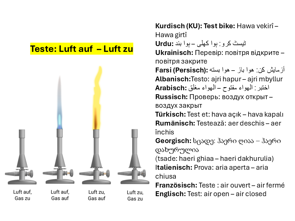 - Macht (dreht, erstellt) im Team ein Video: Wie macht man einen Brenner an/aus? Nutzt die Vorlage M4. Zeigt keine Personen.