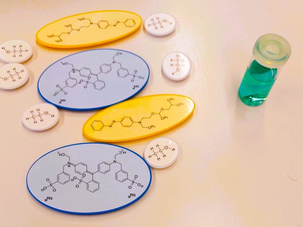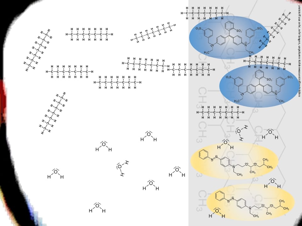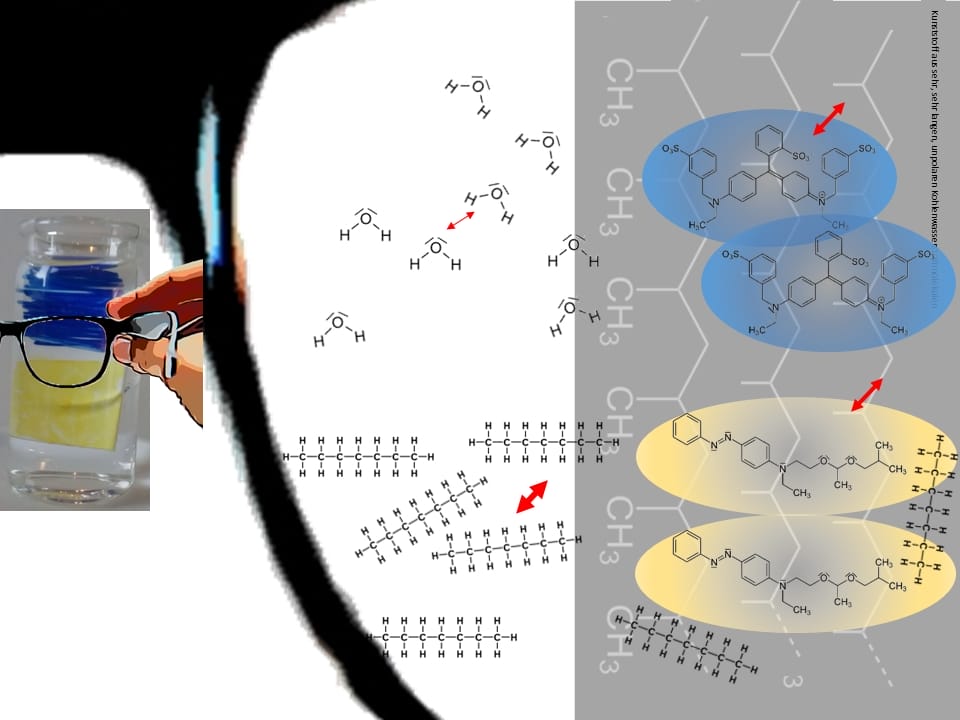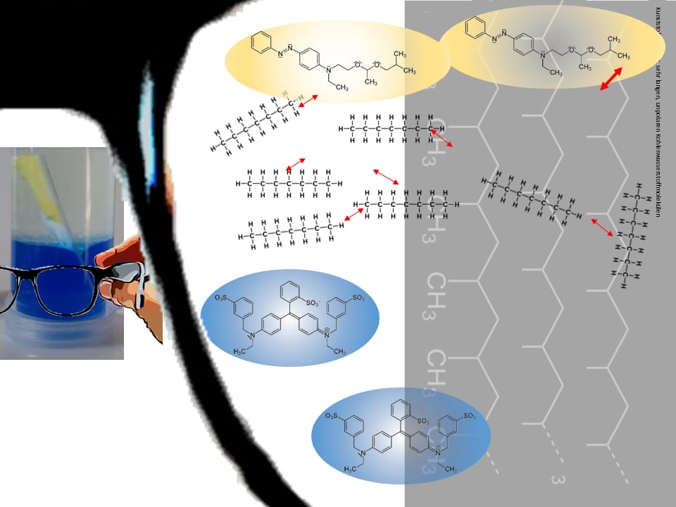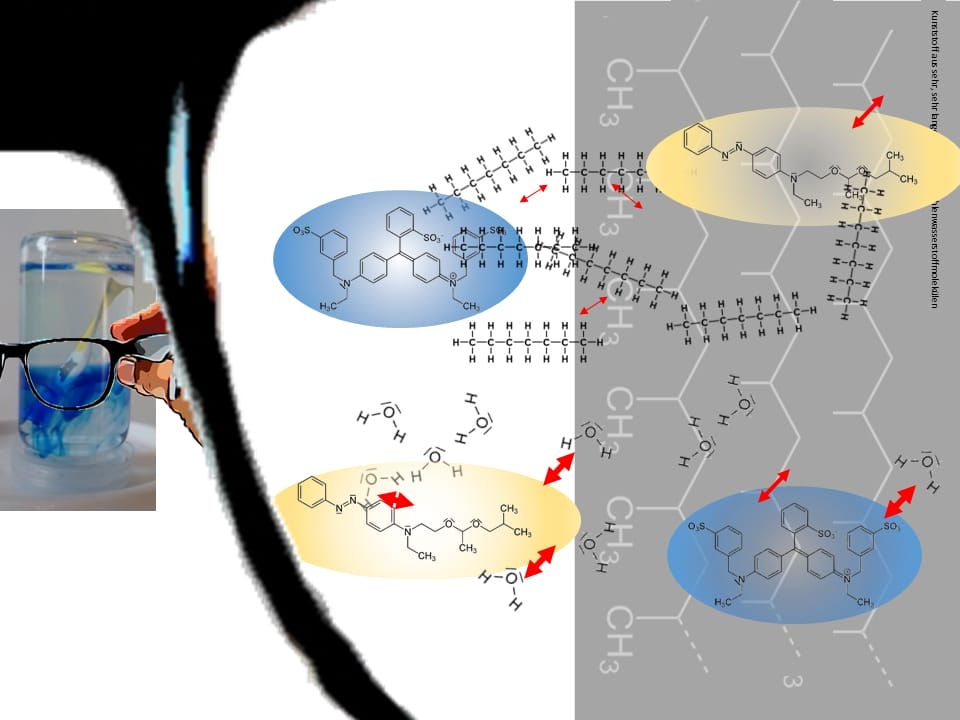 - Notieren Sie ihre Beobachtungen und formulieren Aussagen zur Löslichkeit der Farbstoffe.