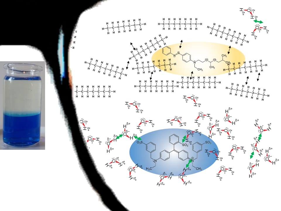 Prüfen und erklären Sie folgendermaßen, welcher Farbstoff (permanent bzw. unpolar, non permanent bzw. polar) sich in welchem Lösemittel (Wasser polar, Heptan unpolar) besser löst: