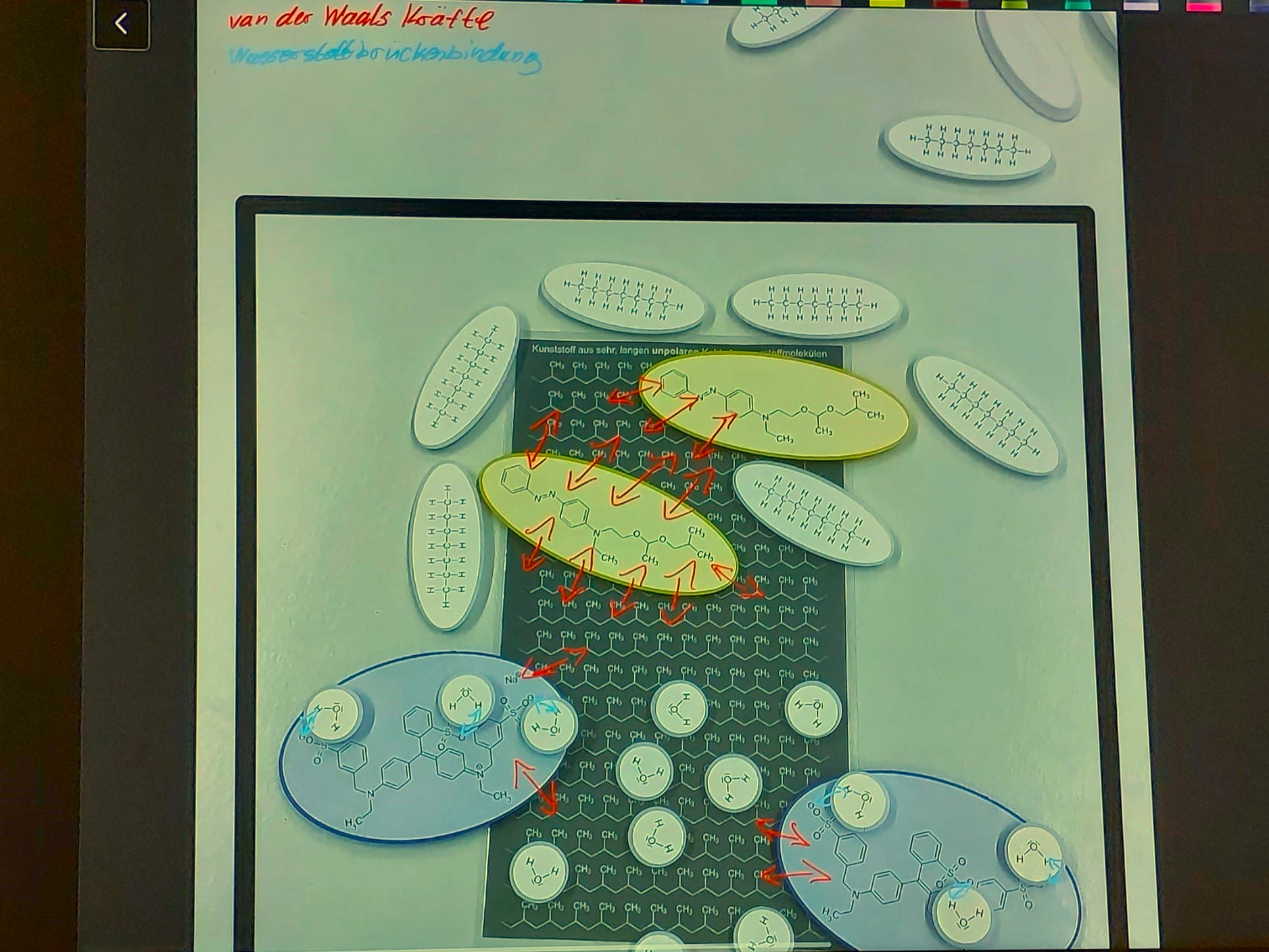 - Erstellen Sie für die Erläuterung der Sachverhalte zu den vier „Augenblicksaufnahmen“ in M2 das jeweils passende Szenario auf Teilchenebene. Nutzen Sie die haptischen Modelle und Whiteboards. Beschriften Sie ihre Abbildungen fachsprachlich korrekt.